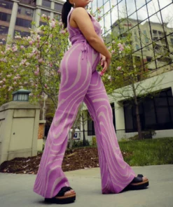 Another Girl Lurex Swirl Flare Pants in Lilac – women