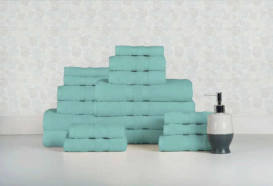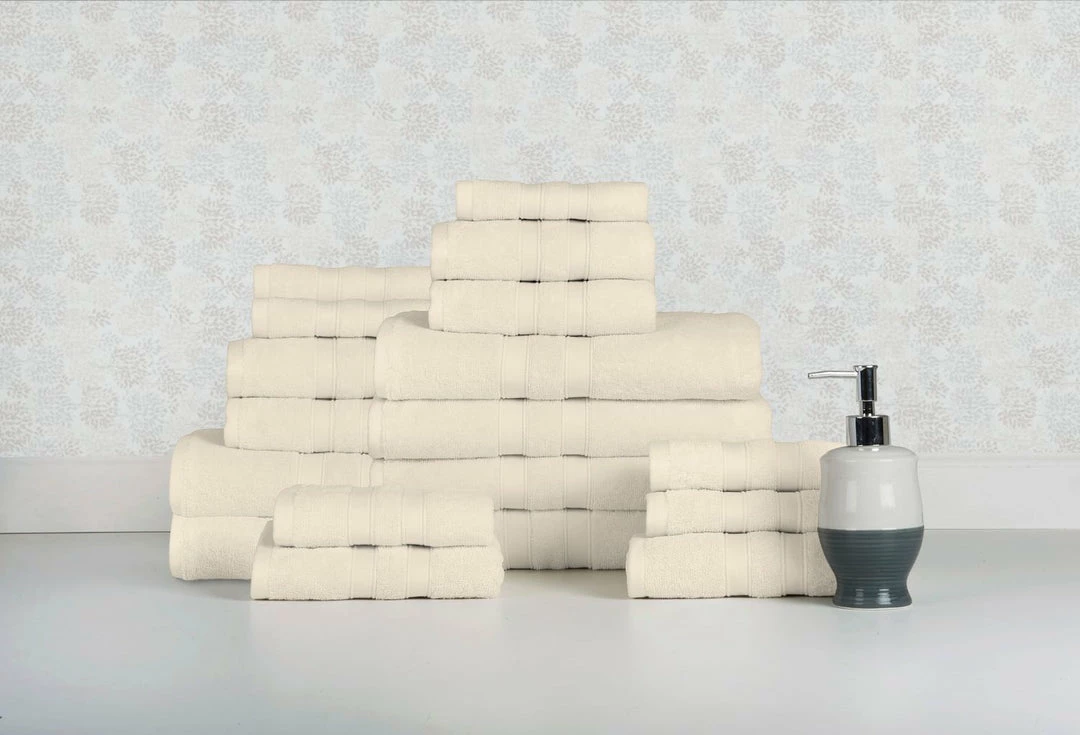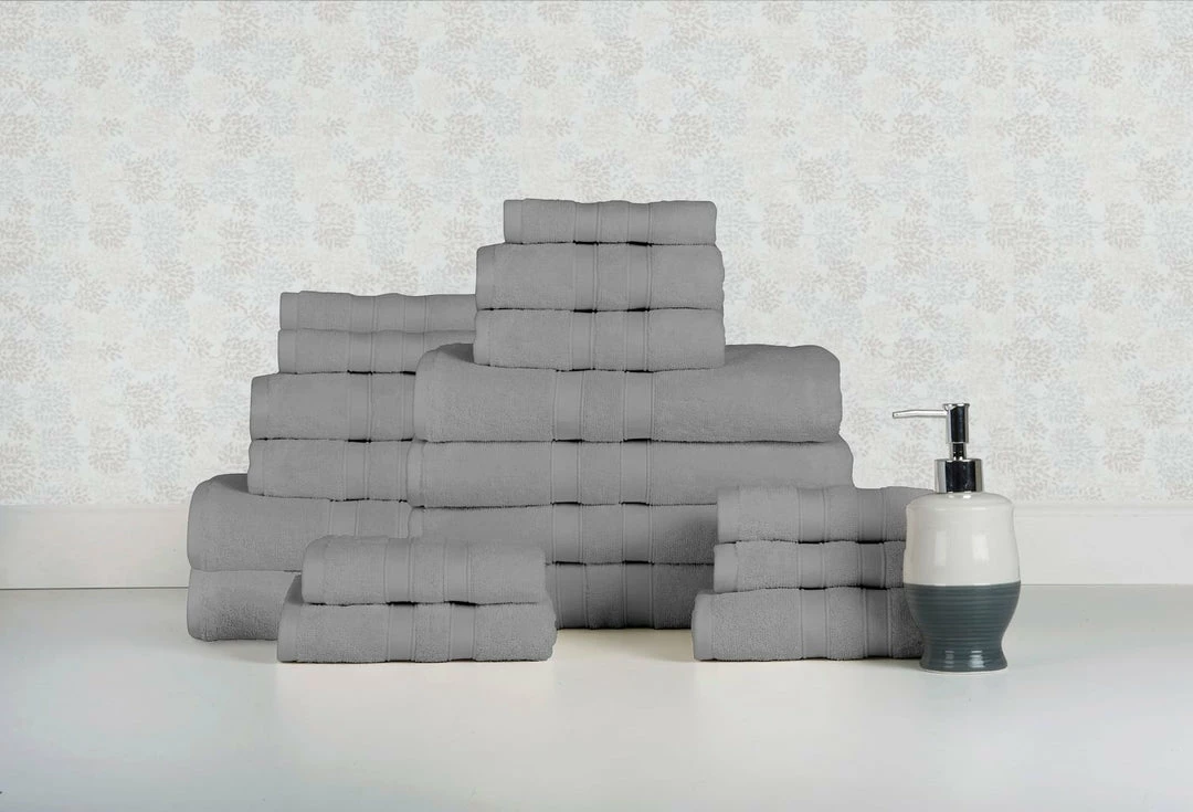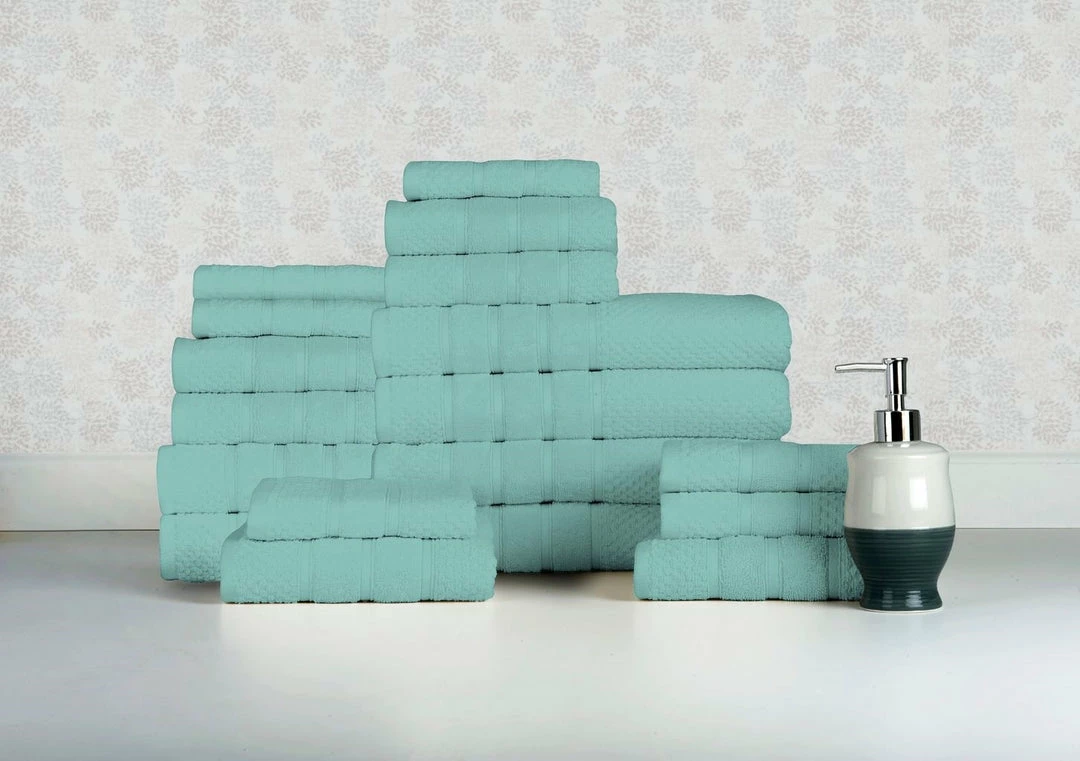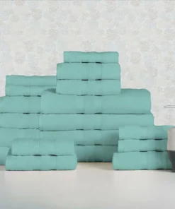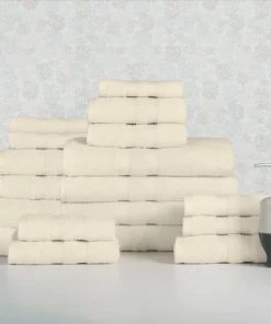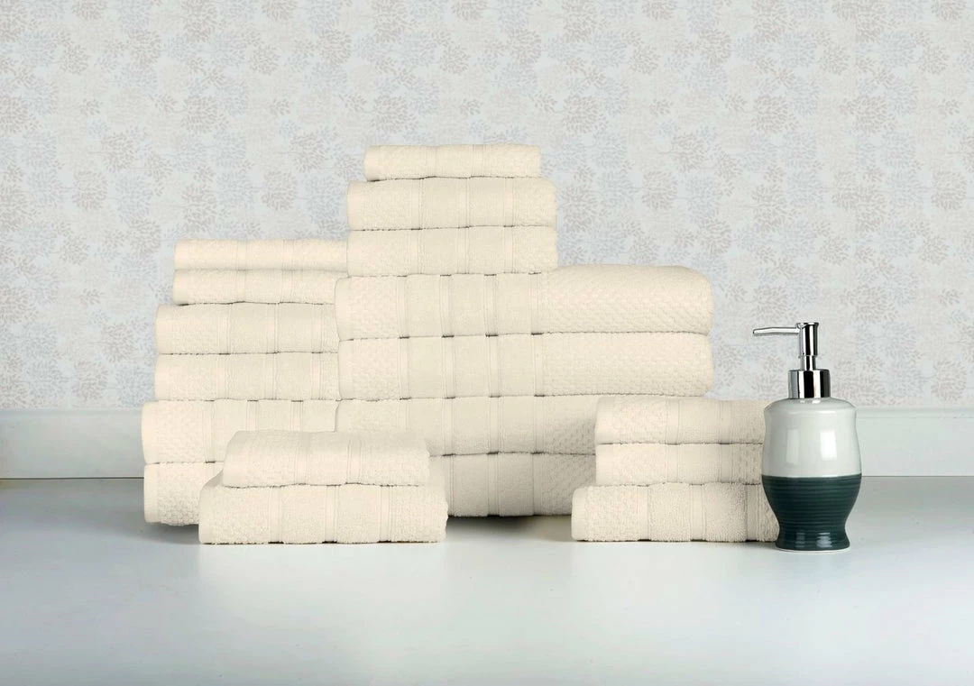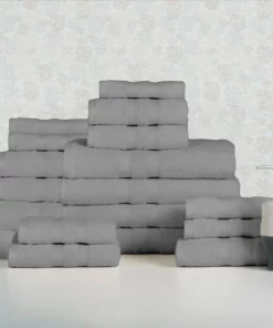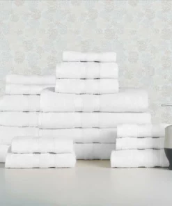 - Towel set includes 6 bath towels, 6 hand towels, and 6 washcloths