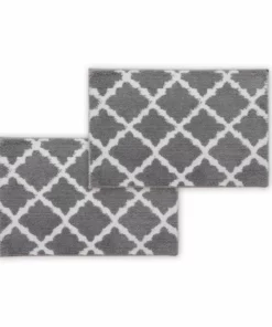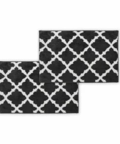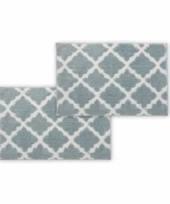 Bring life to your bathroom with the premium 100% Cotton 2 Piece Trellis Bathroom Mat Set. The Trellis pattern brings a European regal look right to your bathroom. A transparent anti-skid spray latex backing is added for keeping rugs safely in place. These super absorbent 100% cotton rugs are machine washable. Extremely plush with cut loop velour finish, this bath mat set feels as luxurious as it looks.