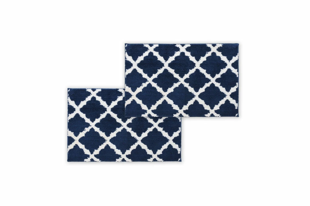 Bring life to your bathroom with the premium 100% Cotton 2 Piece Trellis Bathroom Mat Set. The Trellis pattern brings a European regal look right to your bathroom. A transparent anti-skid spray latex backing is added for keeping rugs safely in place. These super absorbent 100% cotton rugs are machine washable. Extremely plush with cut loop velour finish, this bath mat set feels as luxurious as it looks.