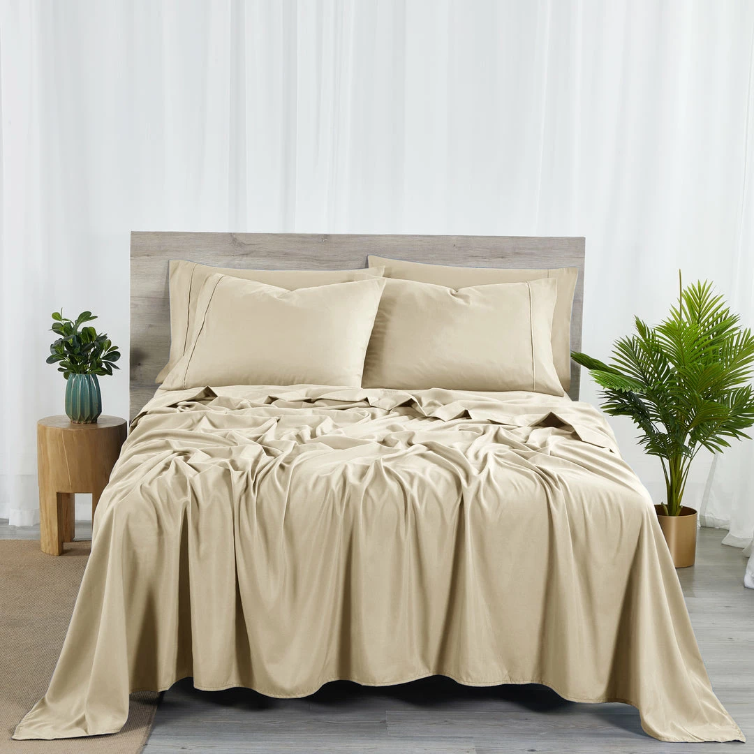 Create a welcoming sleeping atmosphere and gives a comforting & cozy touch to your skin. These temperature regulating sheets stay cool in summer and warm in winter so you sleep better and welcome each morning full of energy and freshness. The quality Bamboo fabric with smooth texture protects your hair & skin from breakage and is completely safe to use for you and your family. LAY IN LUXURY- No more sleepless nights on uncomfortably itchy sheets! Sleep soundly on the softest 2000 Thread Count Supreme Collection Bamboo-blend sheets. They are softer than 1,000-thread-count Egyptian cotton! Be warned, though You may never be an early bird again! DEEP POCKETS Fits mattresses up to 16 deep with elastic all around the fitted sheet. Made of the highest quality 50% microfiber and 50% Bamboo blend with the largest selection of rich vibrant colors that will certainly add to your bedroom décor.