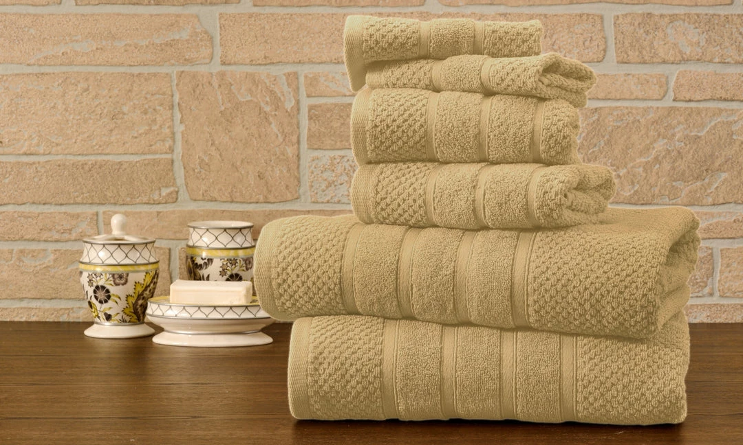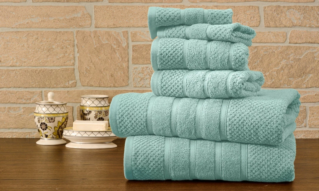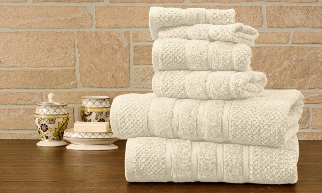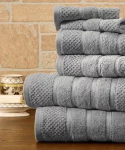 - Towel set includes 2 bath towels, 2 hand towels, and 2 washcloths