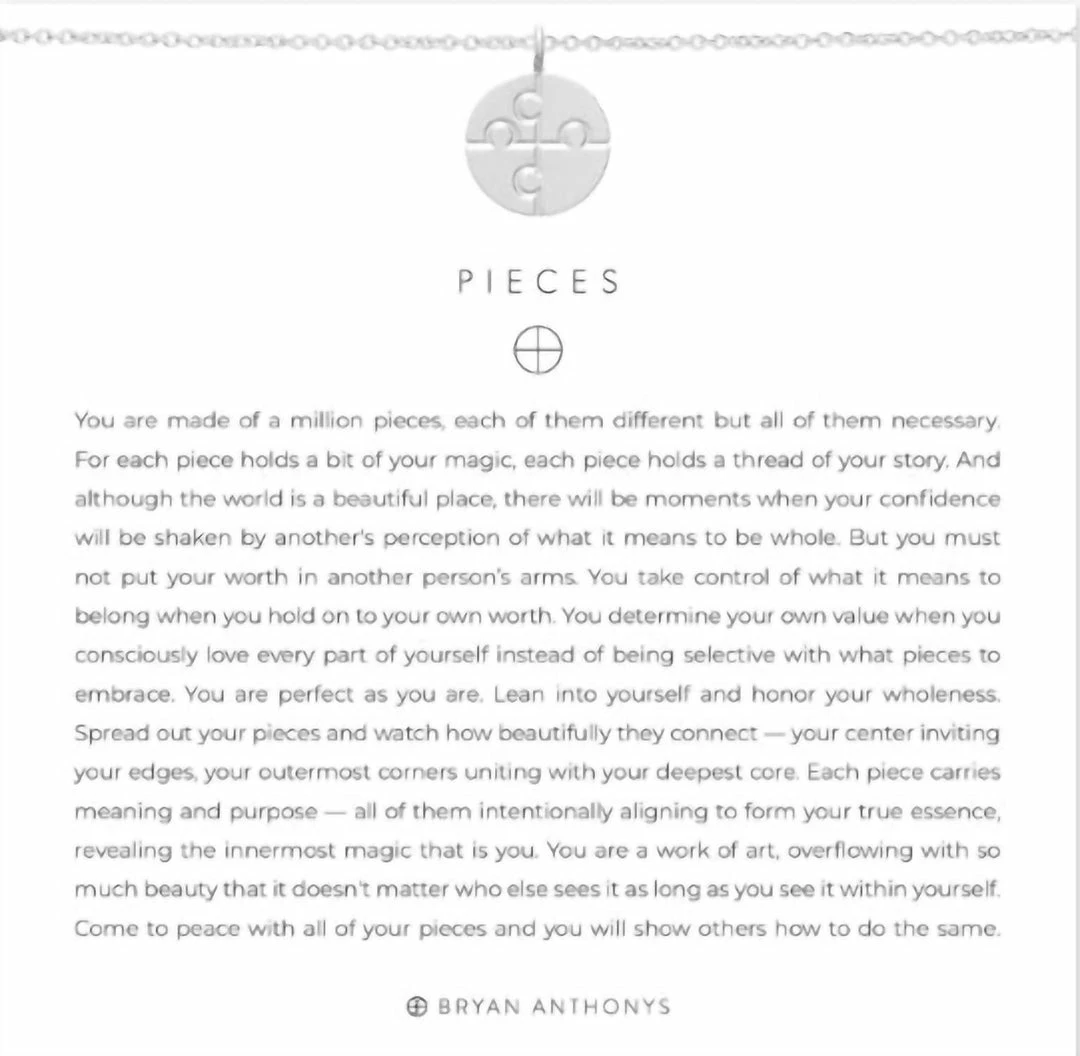 Measures 16″-20″”You are made of a million pieces, each of them different but all of them necessary. For each piece holds a bit of your magic, each piece holds a thread of your story. And although the world is a beautiful place, there will be moments when your confidence will be shaken by another’s perception of what it means to be whole. But you must not put your worth in another person’s arms. You take control of what it means to belong when you hold on to your own worth. You determine your own value when you consciously love every part of yourself instead of being selective with what pieces to embrace. You are perfect as you are. Lean into yourself and honor your wholeness. Spread out your pieces and watch how beautifully they connect your center inviting your edges, your outermost corners uniting with your deepest core. Each piece carries meaning and purpose all of them intentionally aligning to form your true essence, revealing the innermost magic that is you. You are a work of art, overflowing with so much beauty that it doesn’t matter who else sees it as long as you see it within yourself. Come to peace with all of your pieces and you will show others how to do the same.”