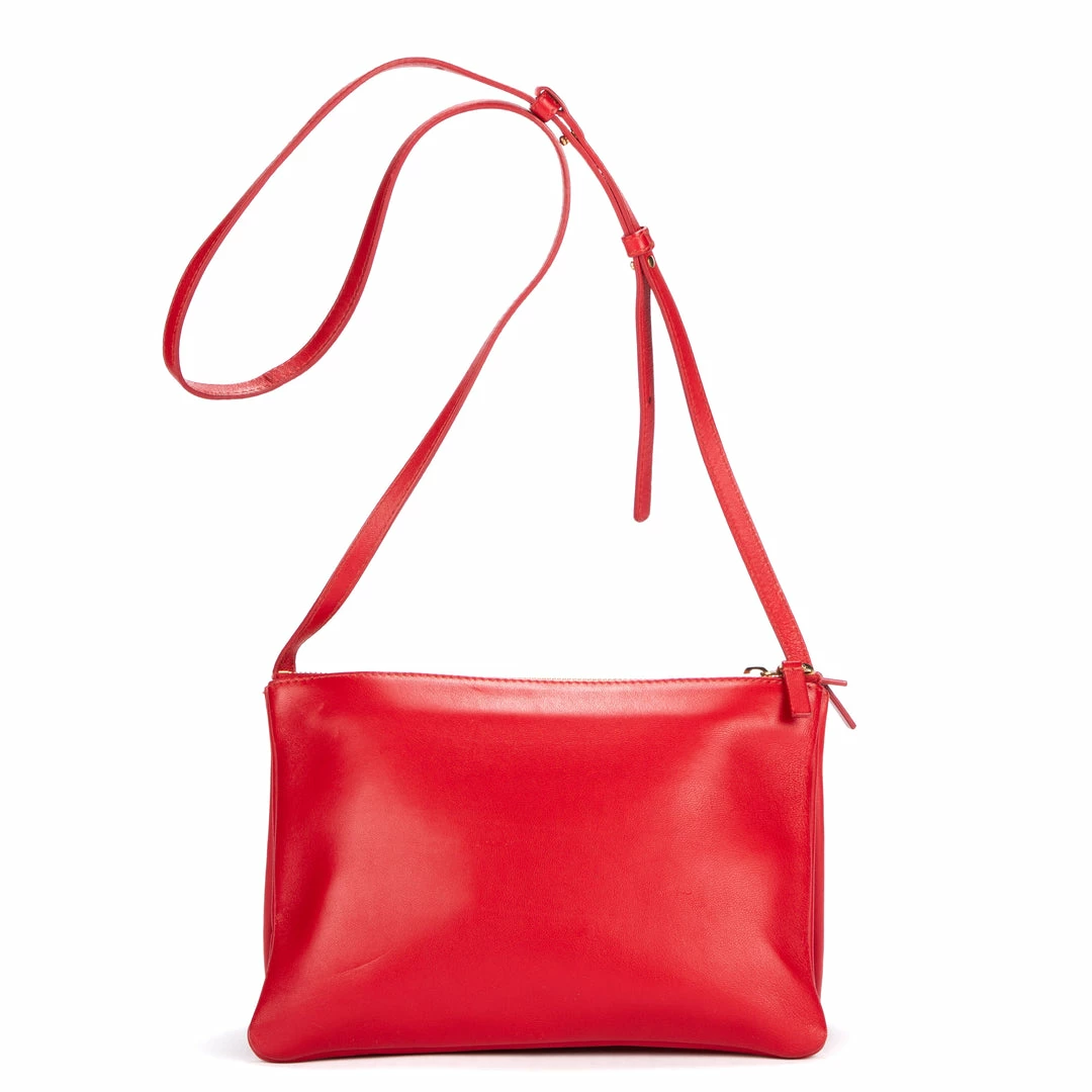 Céline Shoulder Bag in Red Lambskin Leather and N/A hardware. Dimensions – 25*17*3cm. Serial number – F-MM-0143. Inclusions – None.