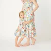Smocked back, square neckline, and ruffled shoulder straps. Concealed back zipper.