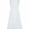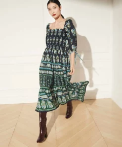 Featuring an intricately embroidered smocked bodice and statement sleeves with a self-tie bow.Square neckline. Three-quarter puff sleeves. Self-tie cuffs. Side pockets. Fit-and-flare silhouette. Slipover style.• Dry Clean Only or Hand Wash Cold