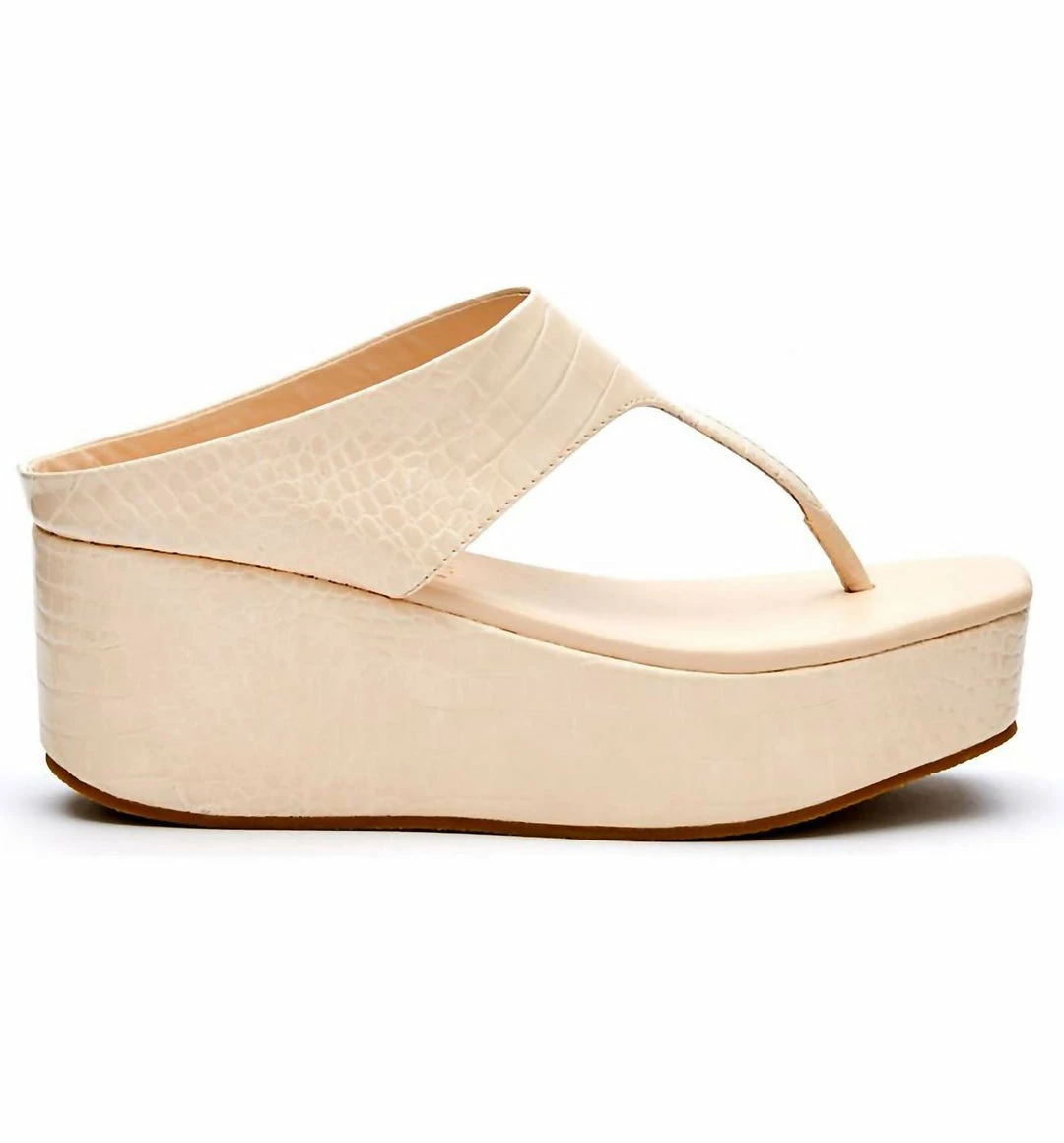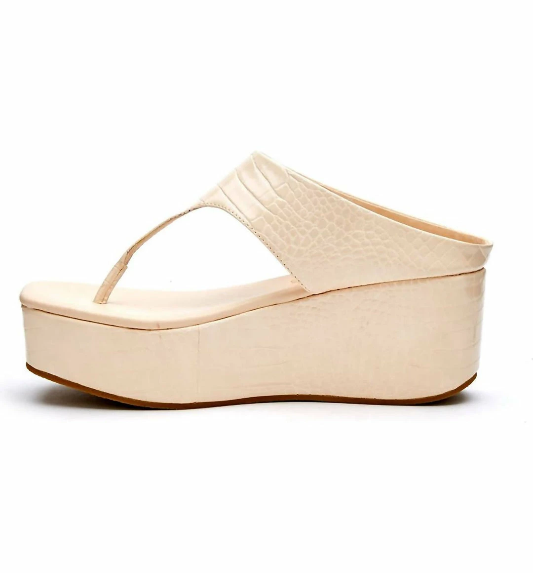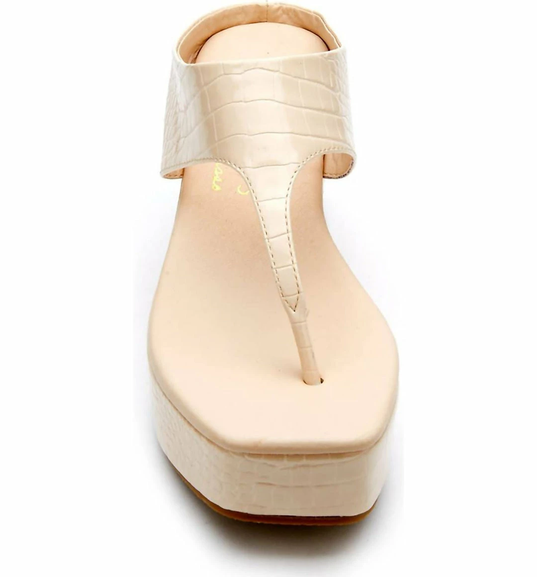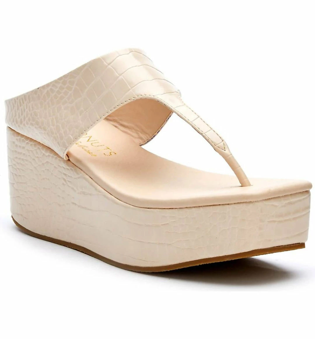 Reptile-embossed faux leather amps up the glam of this breezy slide sandal boosted by a show-stopping wedge platform with cushy padding3″ heel2″ platformSynthetic upper, lining and sole