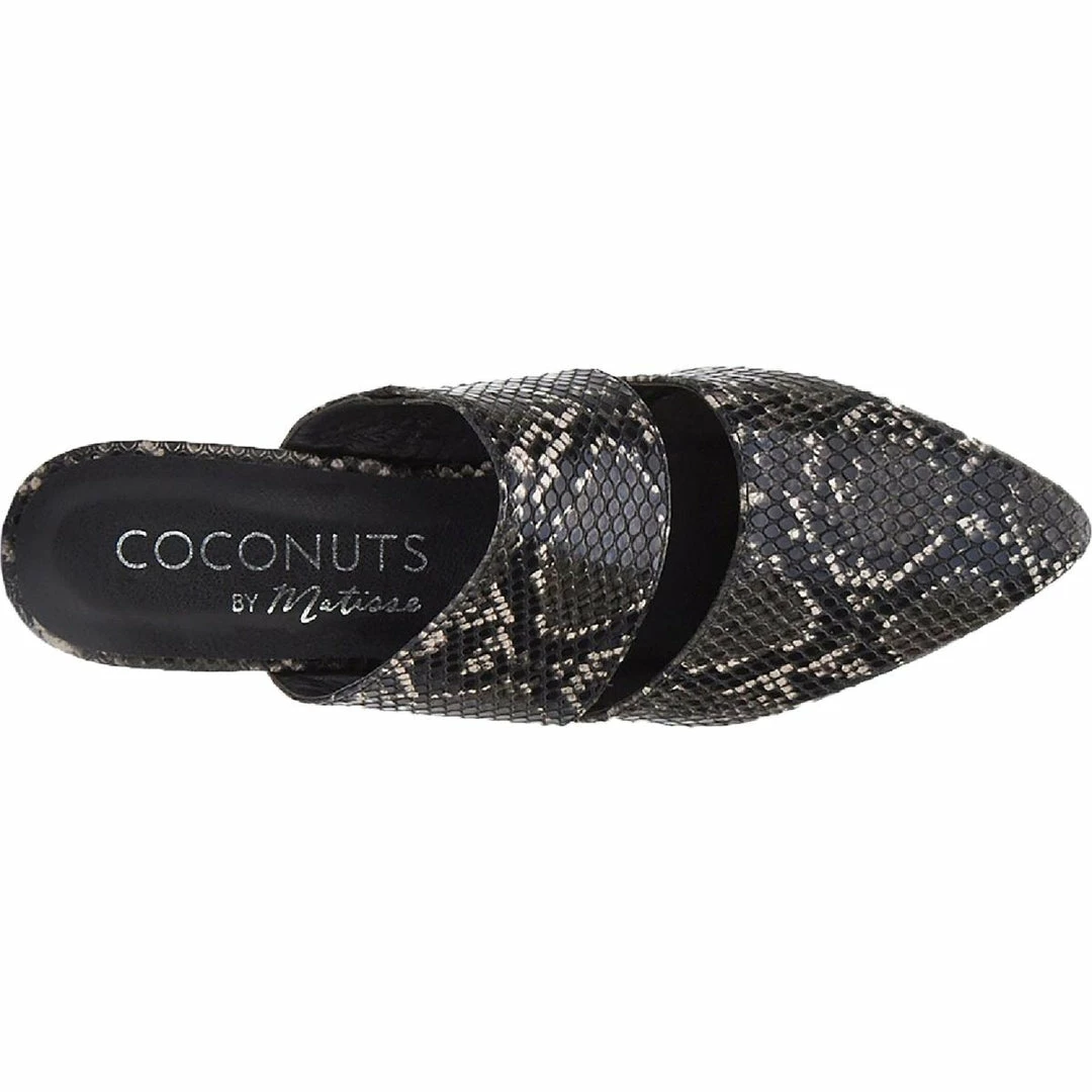 Elevate your look in the Nisa faux leather snake print mules by Coconuts by Matisse. Made with faux leather uppers and an easy slide construction. The almond toe design will add sass and class to any outfit These mules freature a padded footbed and Synthetic outsoles.