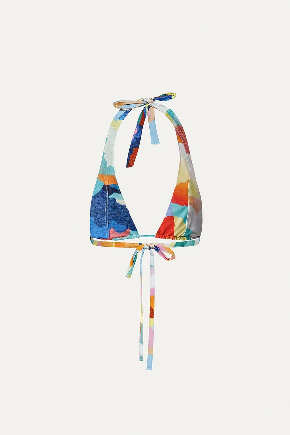 Features triangle cups, vibrant colors, halter neck, and long straps in the back that wrap twice around before tying below the waist. We recommend sizing in your true size.