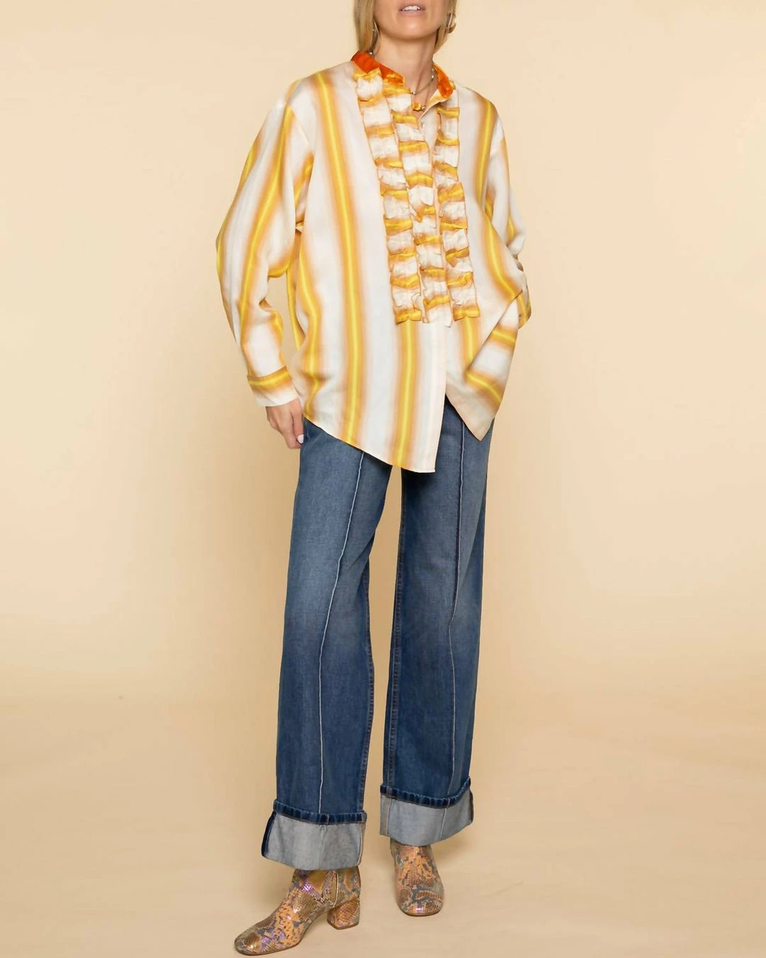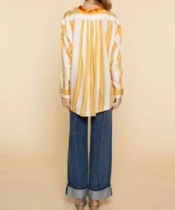 Lightweight and fluid, it features a nuanced vertical–stripe pattern enhanced with tonal velvet accents around the neck.Natalie is 5’10 and wearing a size 0/XS, This style fits true to sizeDry Clean Only