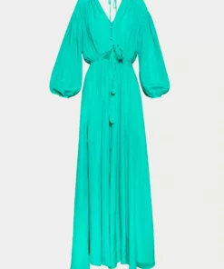 Features long billowing sleeves, plunging V-neckline, triangular open-navel design, and a dreamy gathered skirt. The piece is made out of habotai silPlease Read – ( The real color of this dress will be a richer shade of what is shown in the pictures).Sizing,1-US Smalll2-US Medium
