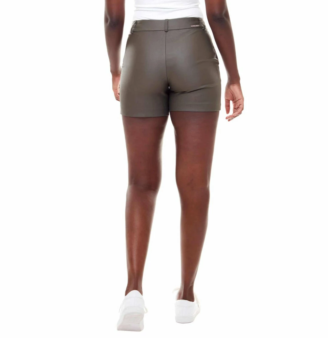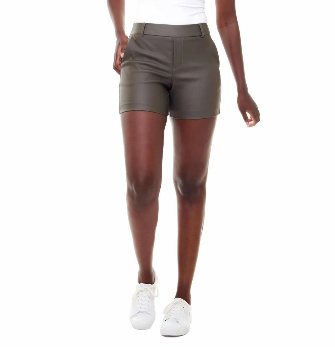 This on-trend beauty is made with a leather-like fabric that elevates the luxe factor and plays off the minimal cut. Featuring an easy pull-on waistband for supreme comfort, discreet side pockets that don’t add bulk, and a relaxed leg for a slightly sporty touch. Equally stunning dressed up or chilled down, the Billie is this season’s avant-garde classic.• Relaxed Fit• Inseam – 9″• Front Rise – 9 1/2″• Pull-on elastic waistbandCare – Turn inside out, machine wash cold, gentle cycle, do not bleach, lay flat to dry, iron low on reverse if needed.Fabric Waxed – 76% Rayon / 21% Nylon / 3% Spandex