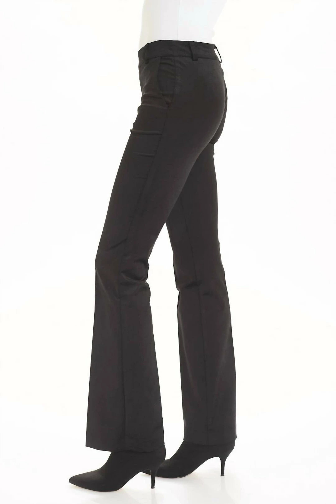 Pull-on bootcut trouser with belt loops and functional pockets 33″ inseam and 9 1/2″ front rise Stretch Velveteen.