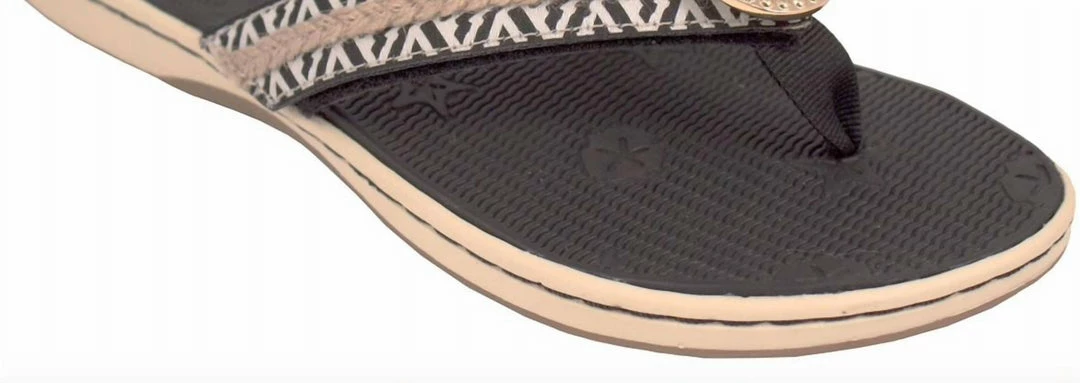 The Bonnie black��flip flop by Lindsay Phillips SwitchFlops, the��interchangeable footwear line our customers love! Buy one pair of flip flops and switch out the strap to fit any outfit.��The tops velcro on and off so you can change them easily.This design comes with a snakeskin sand dollar��strap, 3/4″ EVA foot bed, non-skid sole and a comfortable soft ribbon toe thong.If you wear a half size we recommend you size up.
