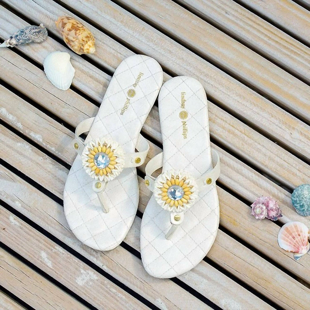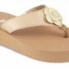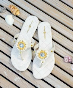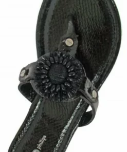Buy one pair of flip flops and switch out the snaps��to fit any outfit.��This design is a pancake flat slide sandal wrapped in a faux snakeskin and comes with a raffia flower snap, 1/2″ heel, and comfortable toe thong.If you wear a half size we recommend you size up.