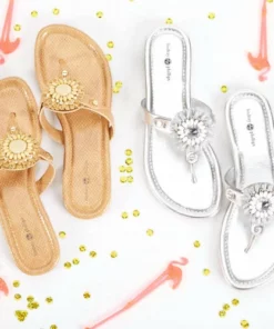 Buy one pair of flip flops and switch out the snaps��to fit any outfit.��This design is a pancake flat slide sandal wrapped in a faux snakeskin and comes with a raffia flower snap, 1/2″ heel, and comfortable toe thong.If you wear a half size we recommend you size up.
