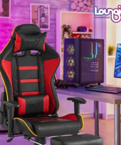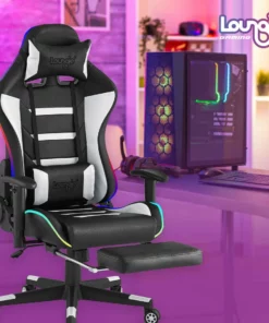 If you’re looking for an affordable gaming chair that provides comfort throughout lengthy gaming sessions, look no further! Our gaming chair features a lumbar massage cushion and a retractable footrest for ultimate comfort. Standard customization choices include swivel, adjustable back angle, seat height, and armrest. Not only that, it’s upholstered in faux leather and equipped with an audio speaker and a colorful lighting effect. Certainly, this chair will complete your modern or contemporary gaming setup.
