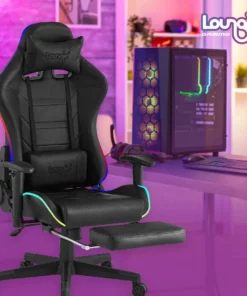 - CONVENIENT EXTRA FEATURES – High quality soft PU leather ergonomic chair is equipped with neck support, lumbar support cushions, retractable footrest, multi-color lighting effect and audio speakers, enabled by Bluetooth.