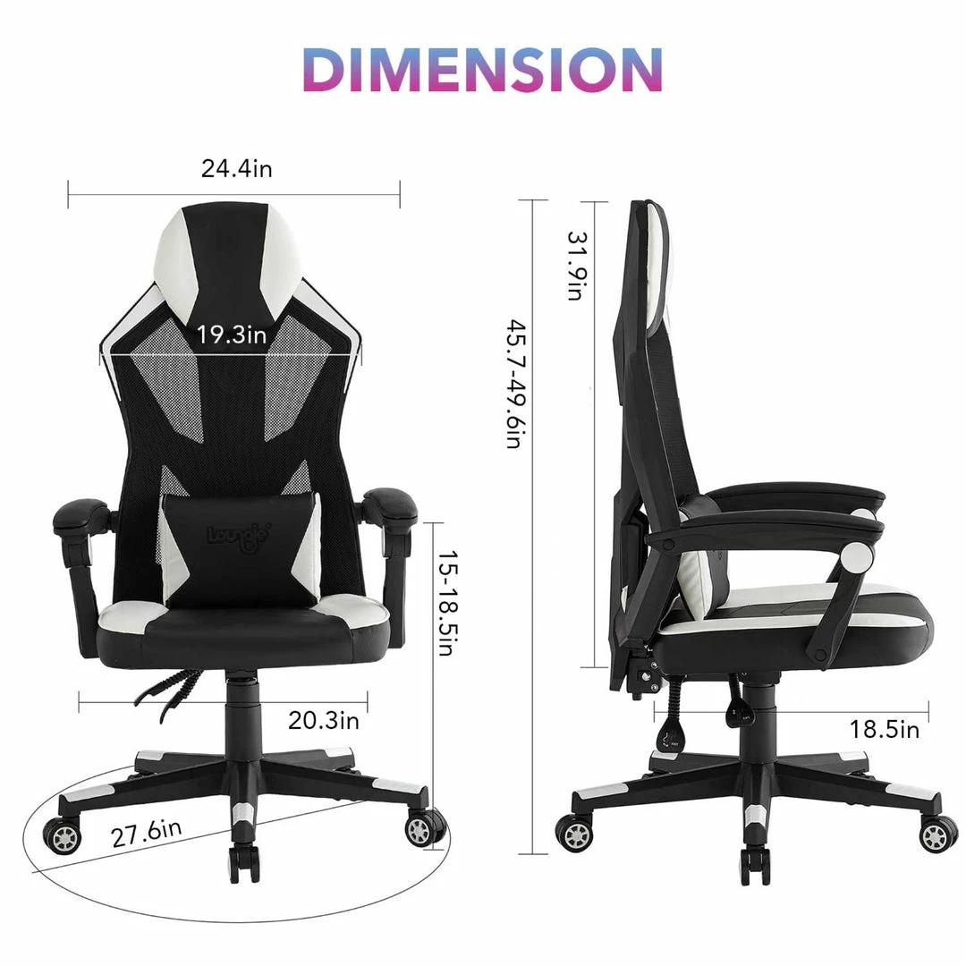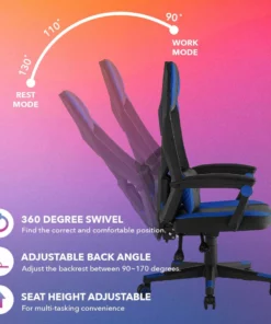 - ADDITIONAL COMFORT – This gaming chair is ergonomically designed to embrace your body and support your neck and spine. Adjustable back angle and seat height can give you stronger support for long time gaming or working.