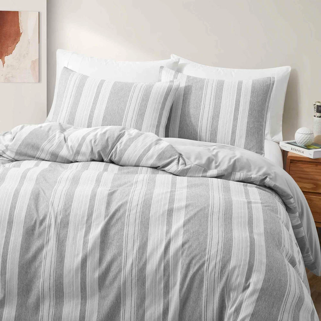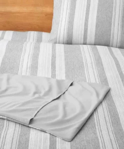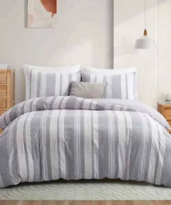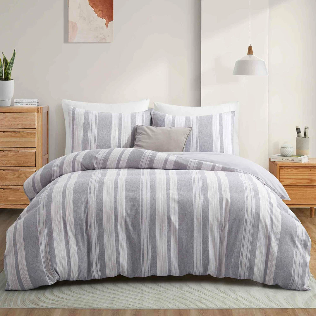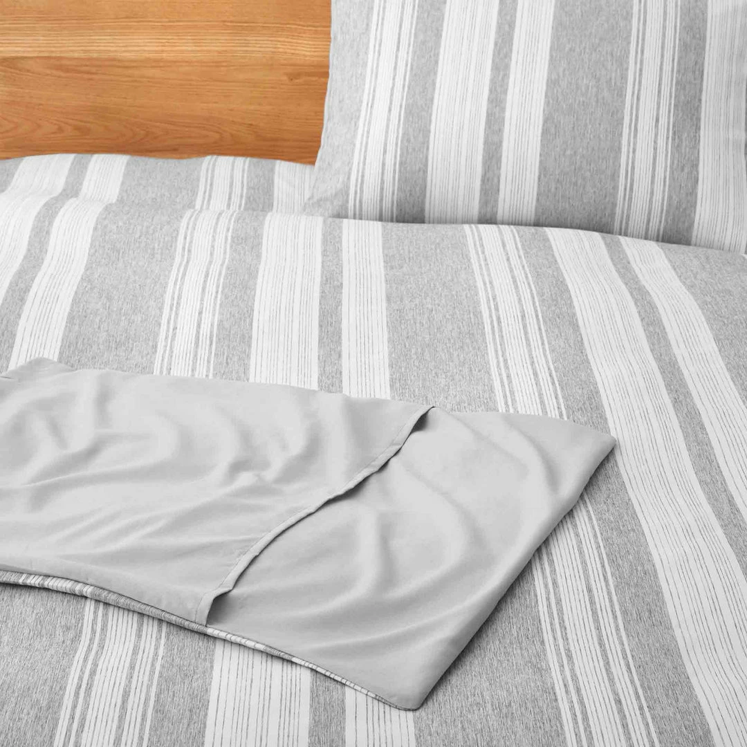 Duvet cover and pillow sham set feature classic stripe pattern, Matching solid color on the back for stylish constrast