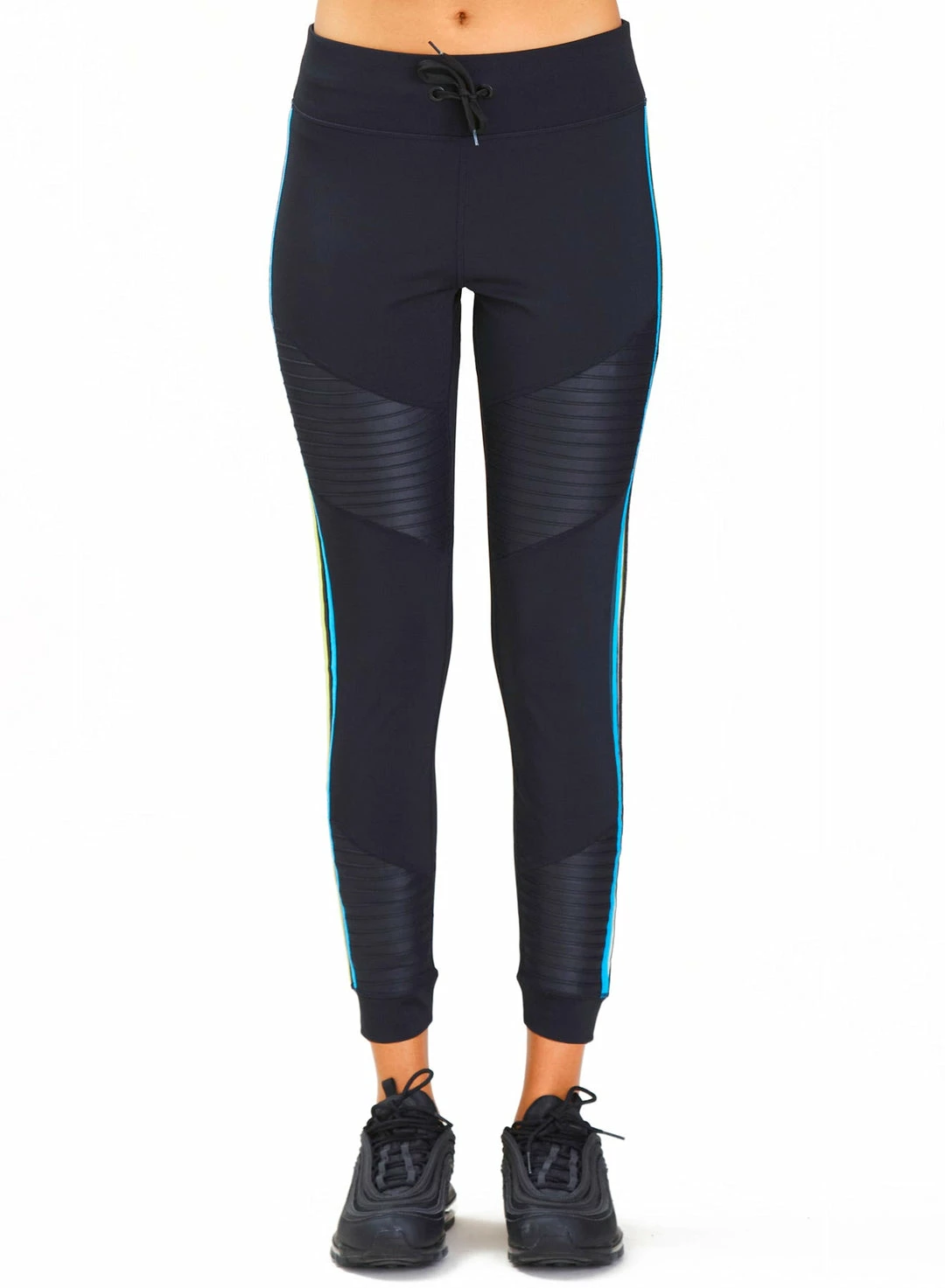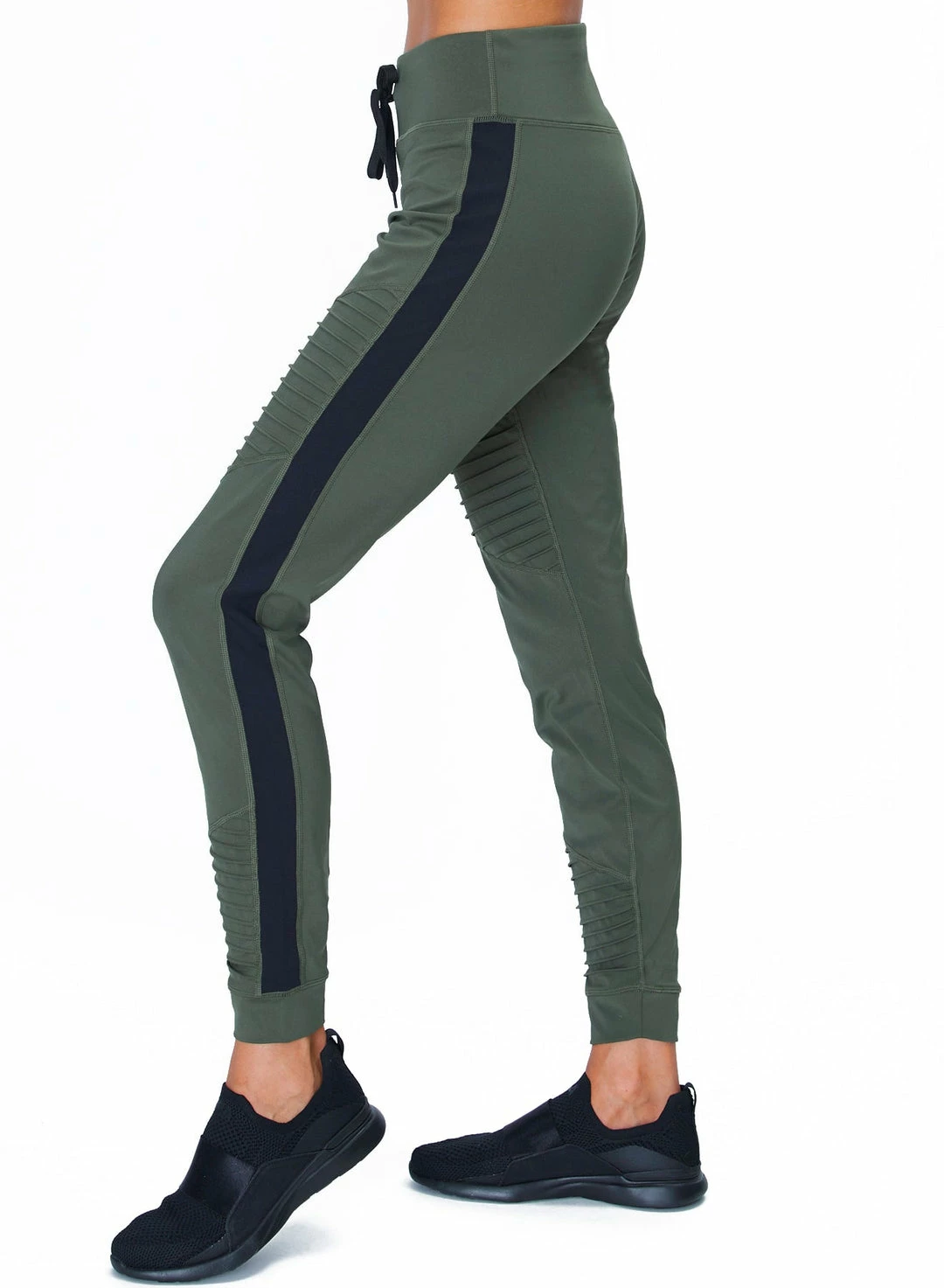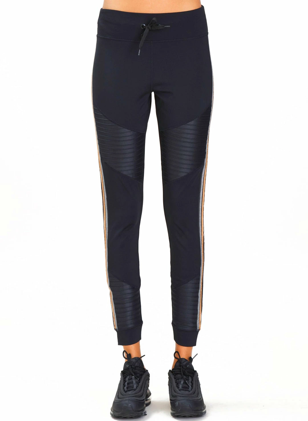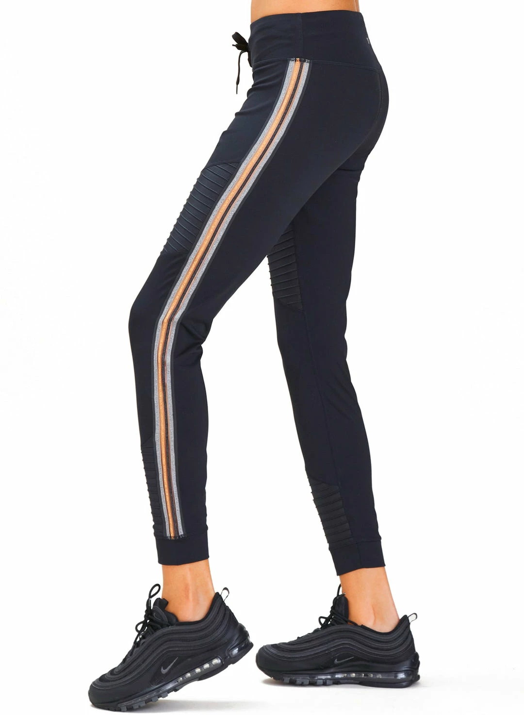 This semi-fitted jogger is actually crafted out of legging material that makes them so much more chic than your average jogger (anddddd, you can actually work out in them, and yes, we put them to the test!). With a sculpting waistband, drawstring waist, moto pin-tucked inset panels, and custom developed metallic trim/contrasting trim on the sides, these are a fab alternative to jeans, sweats, OR leggings. These are, quite possibly, one of the most multi-purpose bottoms we’ve ever made.