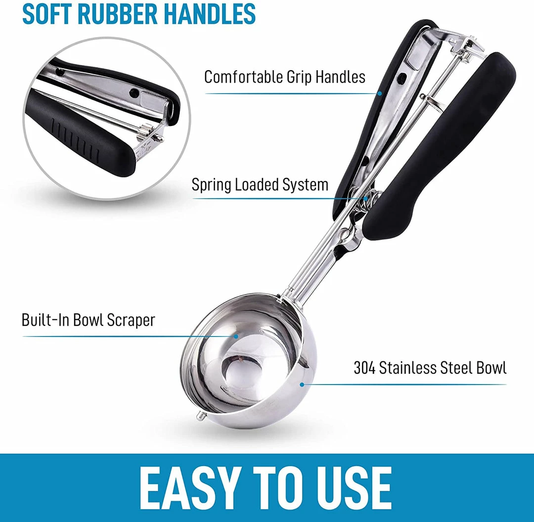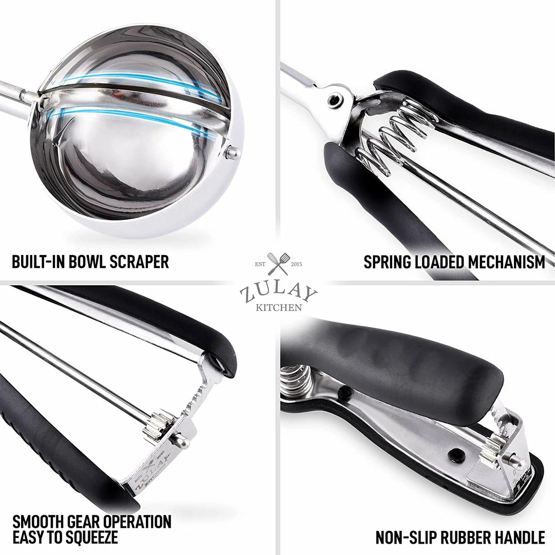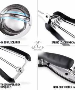 Tired of using the 2 spoon method thinking it was easy and fast only to find out that the final result of your baked goods is uneven? Switch up to the Zulay Kitchen Cookie Scooper and be amazed by how it will make all your scooping chores amazingly convenient! Dimensions – Diameter of scoop is 2.7 inches, the length is 9.5 inches.
