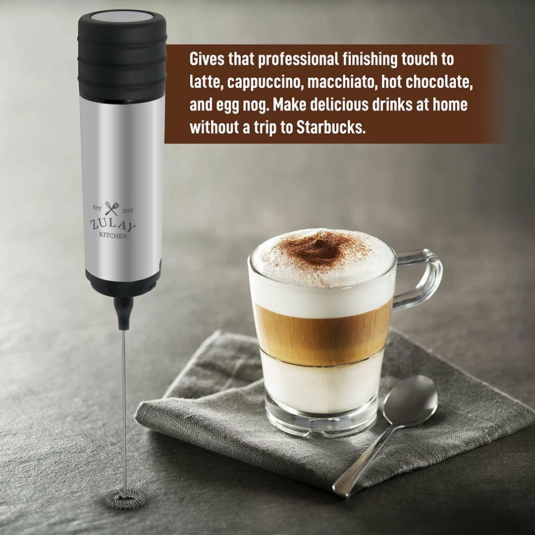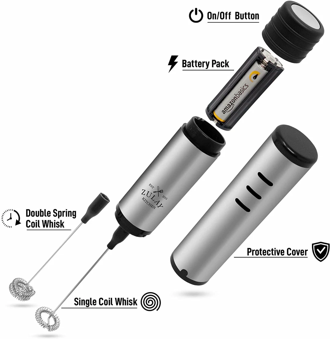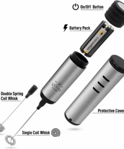 This heavy-duty and portable Milk Frother is ideal for use at home or on the go. The stainless steel case protects the whisks from damage and keeps them clean. Ideal for traveling, the unit is equipped with interchangeable single and double coil whisks, to help you blend and create different amounts of foam. The double coil whisk creates thicker foam with less air and is ideal for latte art, while the single-coil mixes quickly and creates lighter foam.