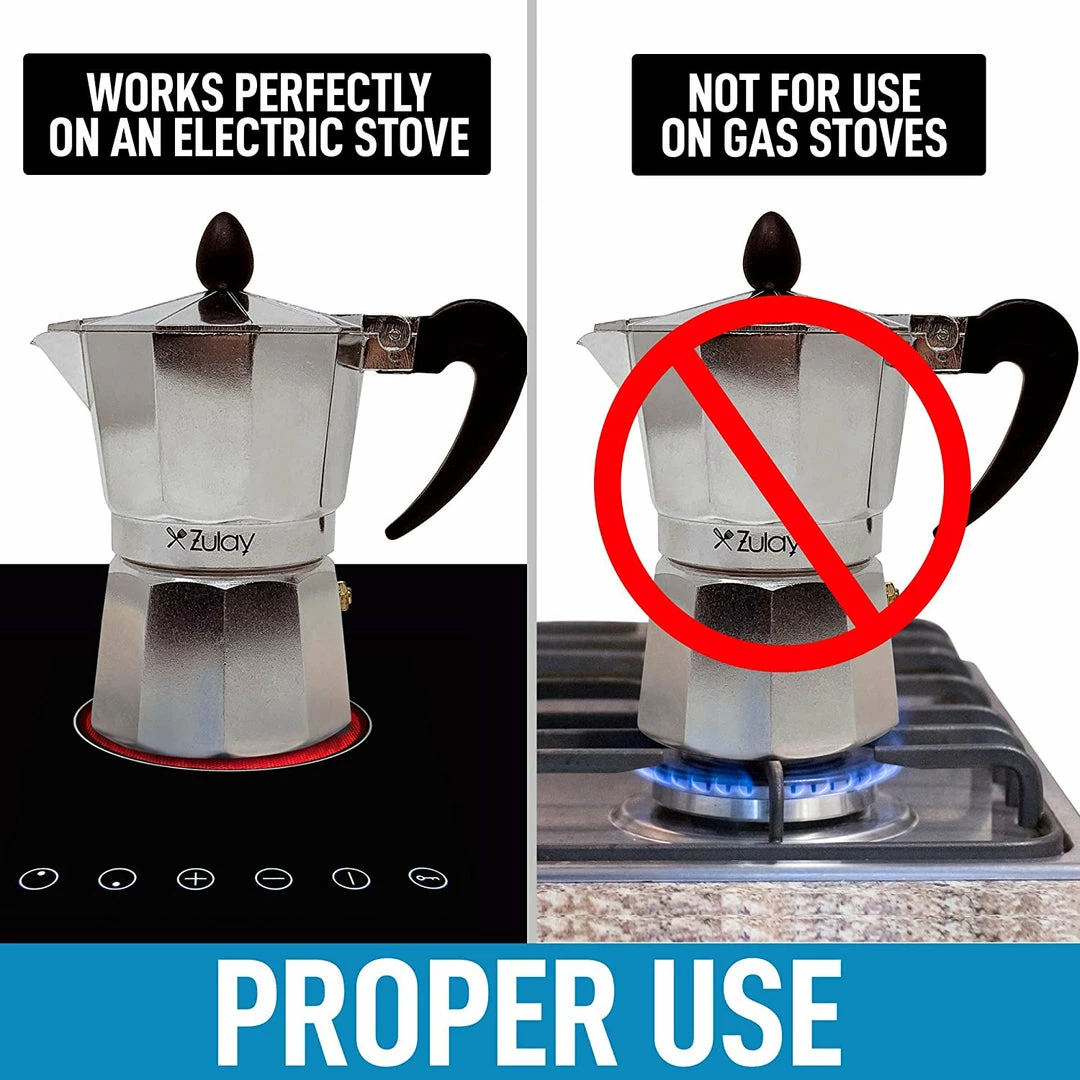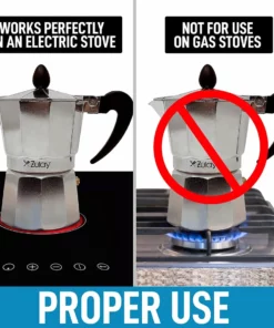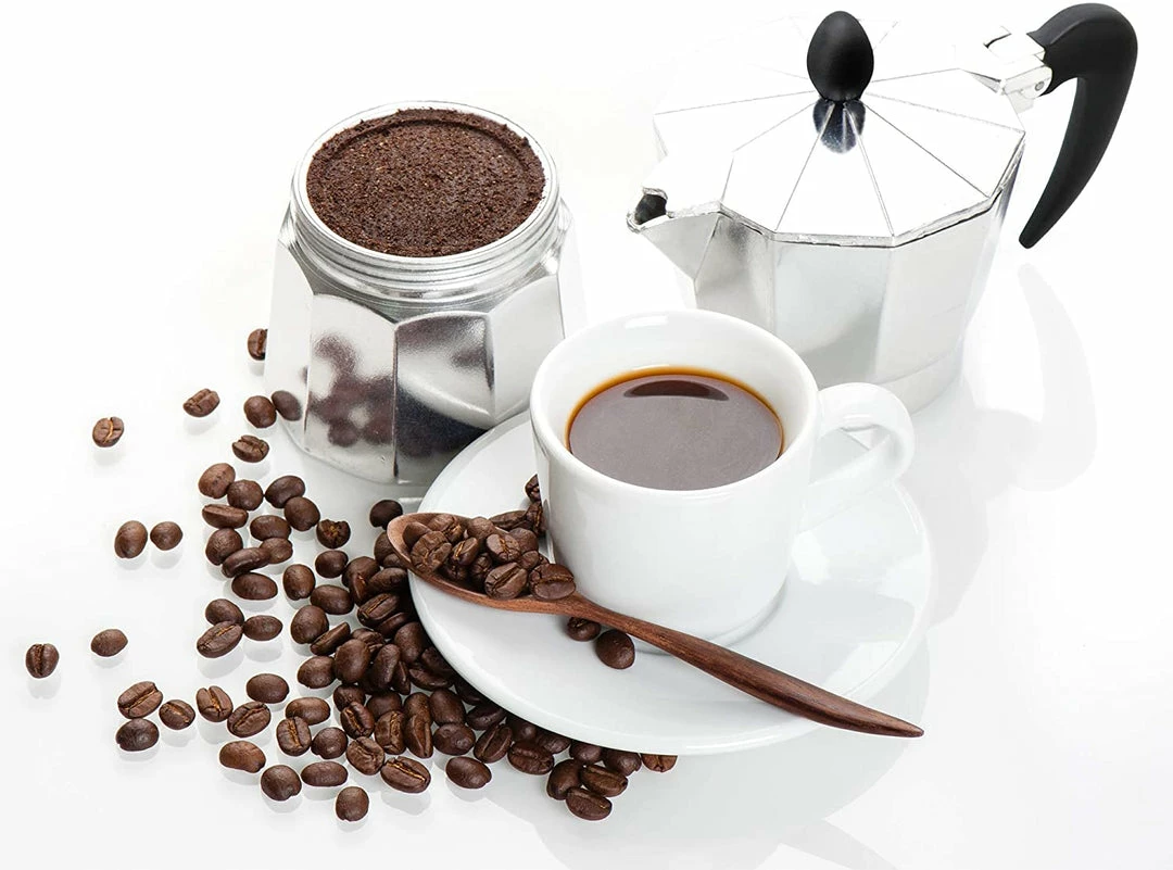 Classic Italian moka pot famous for making the best traditional espresso easily! Durable cast aluminum body with pressure valve for higher caffeine extraction and flavor. Depending on bean variety and grind selection, this espresso maker can create foam emulsion or crema. Heat resistant handle and lid knob for safe pouring.