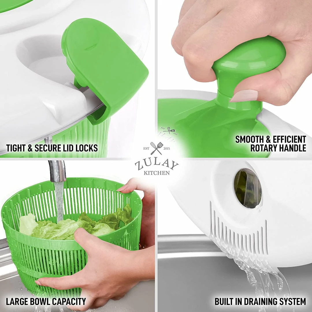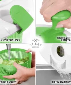 Keep Your Greens Clean and Crispy – There is nothing better than a tasty salad that has a bit of a crunch! With Zulay Salad Spinner, you can now wash and spin as many times as you want until the water runs clear without sacrificing the crisp and texture of your greens. Its 5 litre outer bowl can hold 4-6 salad servings and the basket can be used as a strainer or storage for fruits and vegetables after spinning.