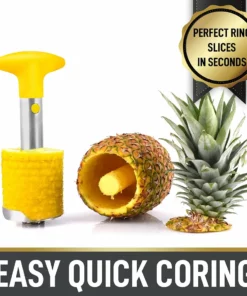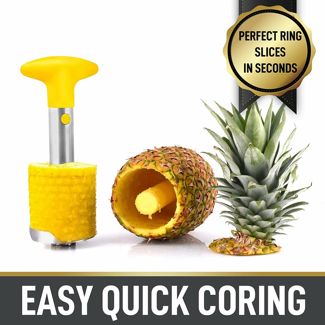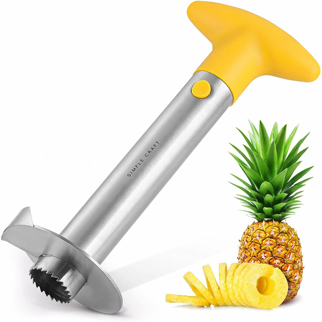 CORES & SLICES PINEAPPLE IN SECONDS Peel, slice, and de-core a pineapple with the Simple Craft Pineapple Corer! Made with premium quality 430 stainless steel that is rust-resistant and BPA-free.